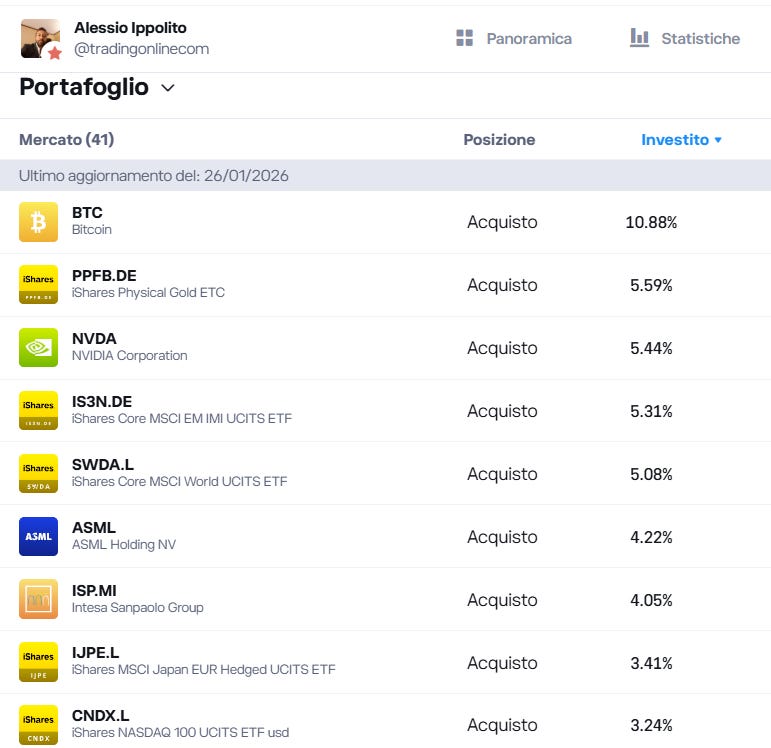 Sul mio profilo eToro potete vedere in tempo reale: