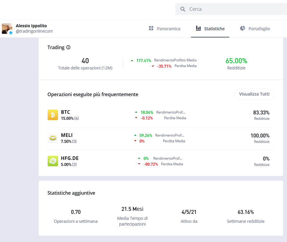 Ecco la parte che ti interesserà di più: sto per rendere pubblica tutta la mia attività di trading e investimento attraverso il mio profilo eToro da Popular Investor: ebbene si, dopo anni di lavoro come trader privato in eToro (questo profilo è del 2021), il 25 agosto scorso eToro mi ha eletto Popular Investor quindi a partire da quella data chiunque volesse potrà iniziare non soltanto ad aggiungermi in Watchlist ma soprattutto copiare le mie operazioni di trading e può farlo da qui.