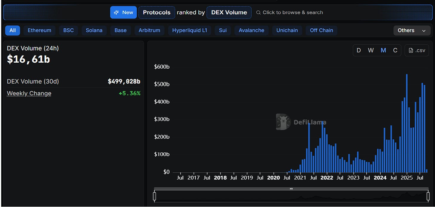 I dati osservati in merito ai migliori DEX di ottobre 2024 raccontano una storia di accumulo costante: $194.74 miliardi di volumi totali, con Solana che superava Ethereum per la prima volta ($52.157B vs $41.499B). Raydium su Solana cresceva del 74.7%. Questi non sono numeri di un mercato morto o manipolato. Sono numeri di un mercato che costruisce infrastruttura e attrae capitale reale.