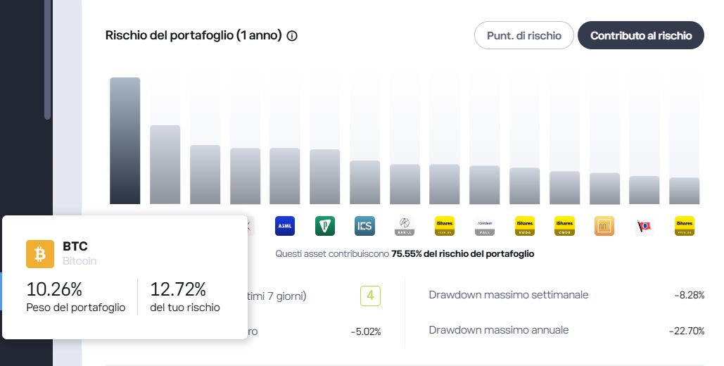 La partecipazione azionaria è sicuramente più volatile rispetto alla parte destinata agli ETF, così come lo è ancora di più la parte destinata a Bitcoin.